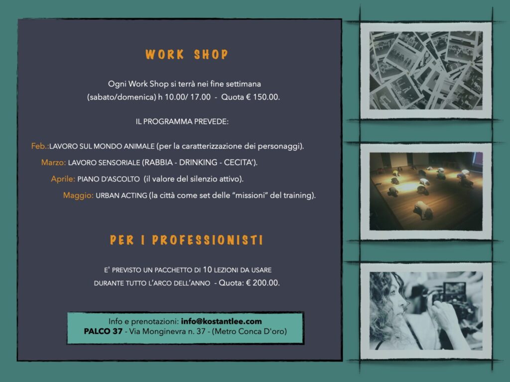 La nostra missione è quella di offrire a tutti l’opportunità di avvicinarsi all’arte in modo autentico e formativo. Attraverso corsi di recitazione, seminari di scrittura creativa, yoga, musica dal vivo e laboratori, Palco 37 propone esperienze che stimolano la crescita personale. Questo spazio si distingue per l’approccio educativo che promuove la cultura come strumento di sviluppo e confronto per persone di tutte le età, dai bambini agli adulti.